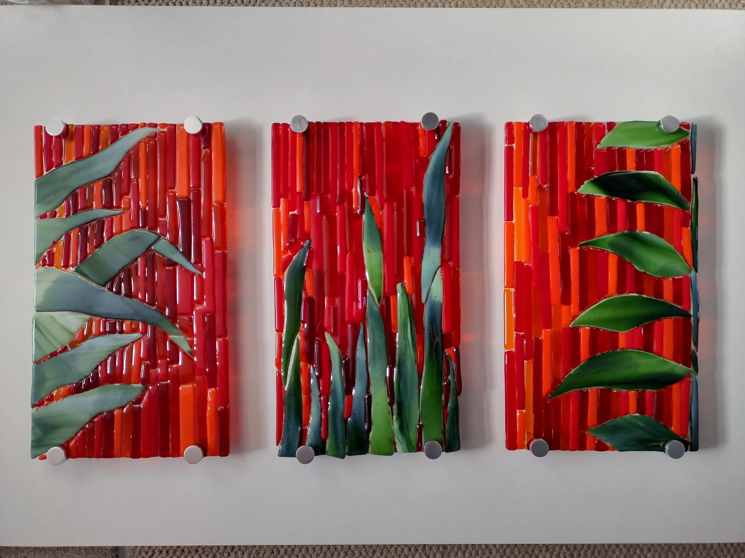 We create fused glass art and decor in a variety of styles. We welcome commissions so if you have an idea for something you'd like please contact us.